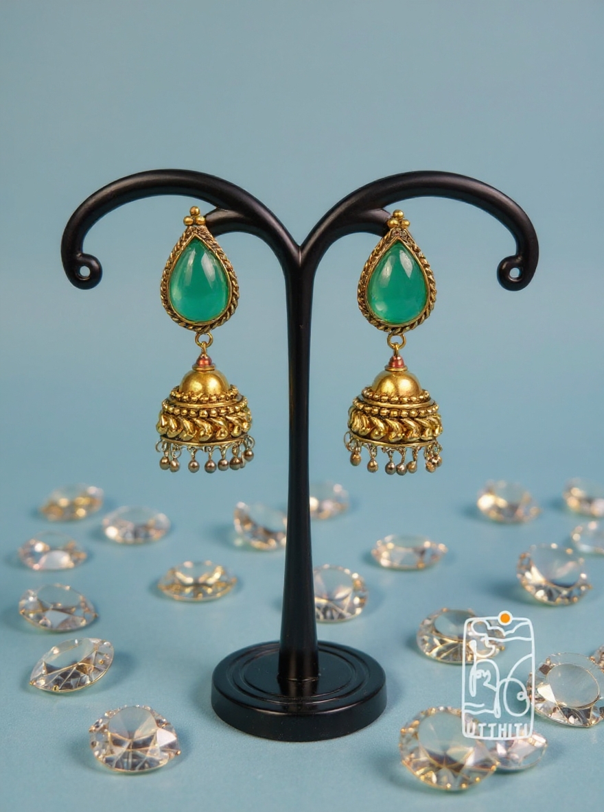 The Antique Gold Temple Jhumka V9 is a true celebration of heritage and artistry — a piece that captures the divine essence of temple jewelry with regal elegance. Handcrafted in an antique gold finish, these jhumkas feature intricate temple-inspired motifs that echo the grandeur of South Indian craftsmanship.