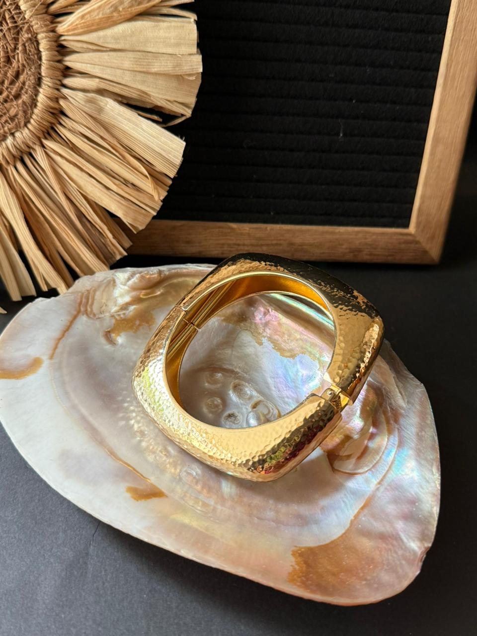 A polished golden metal bracelet with a sleek design for everyday elegance and comfort.