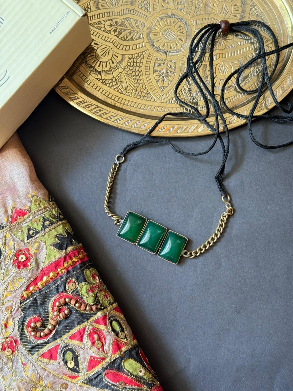 Green Rectangular Stoned Choker