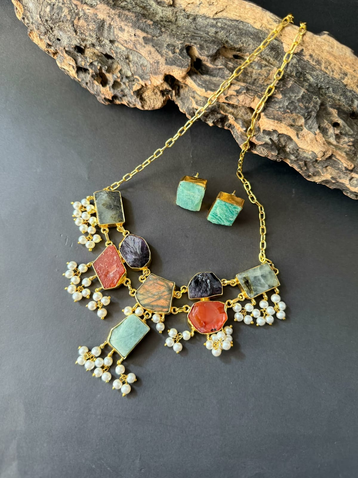 A raw and unpolished stone necklace that highlights nature’s true beauty.